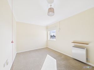 Double glazed window to side elevation, fitted wardrobes with shelving and hanging space and mirrored sliding doors, coving and electric storage heater