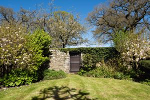 The property is approached through double iron gates with a sweeping gravelled driveway leading to the detached garage block and front entrance, additional single garage with two stores alongside. This fabulous property is set in grounds of approximately 5.75 acres with 2 well enclosed fields/paddocks, beautiful, established gardens, woodland area with a summerhouse, natural brook, mature hedgerows, walled garden, croquet lawn, bandstand.